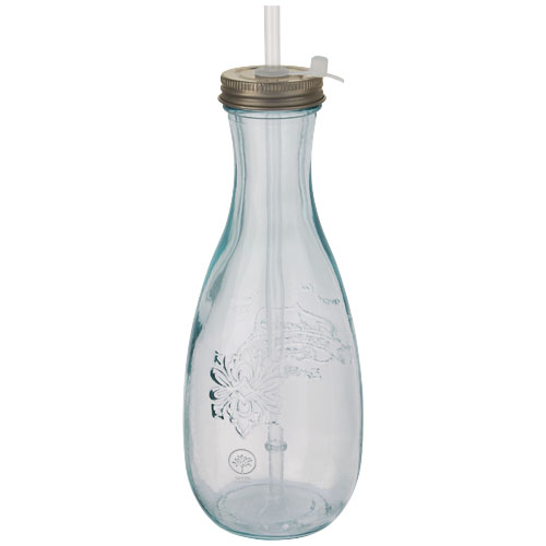 Deze glazen fles van 600 ml met rietje is gemaakt van 100% gerecycled glas en is perfect voor het drinken van water, limonade, thee, sapjes of cocktails. De fles is gemaakt van gerecyclede glazen flessen en heeft een roestvrijstalen schroefdop, waardoor hij helemaal trendy is voor mensen die onderweg van hun favoriete drankje willen genieten. Gerecycled glas wordt geproduceerd met minder energie, grondstoffen en toevoegingen, dan wat nodig is voor het maken van traditioneel glas. De fles en het rietje zijn beide vaatwasmachinebestendig.