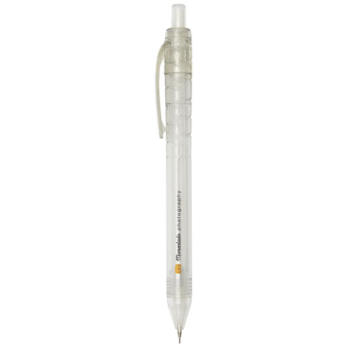 Vulpotlood met klikmechanisme en transparante houder. De houder is gemaakt van gerecyclede waterflessen, wat bijdraagt aan het verminderen van de hoeveelheid plastic afval.