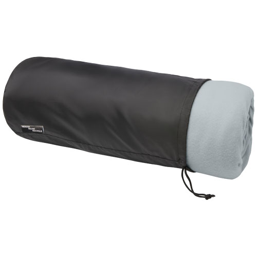 Ultrazachte GRS gecertificeerde RPET polair fleece en 180 g/m2 sherpa deken. Geleverd met een 190T RPET-draagtas met trekkoordsluiting. Verpakt in een gerecyclede polybag. Afmetingen zak: lengte 40 cm, diameter 18 cm.