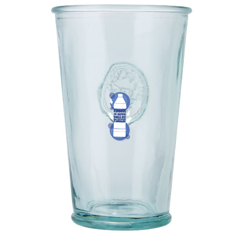 3-delige set van gerecycled glas met drie bekers van 300 ml. Gemaakt van 1 glazen fles. Gerecycled glas wordt geproduceerd met minder energie, grondstoffen en toevoegingen, dan wat nodig is voor het maken van traditioneel glas. Afmetingen beker: hoogte 13 cm, diameter 8 cm.