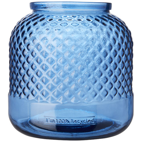 Kandelaar van gerecycled glas met diamanteffect. Gemaakt van 2 glazen flessen. Gerecycled glas wordt geproduceerd met minder energie, grondstoffen en toevoegingen, dan wat nodig is voor het maken van traditioneel glas. Kaars niet inbegrepen.