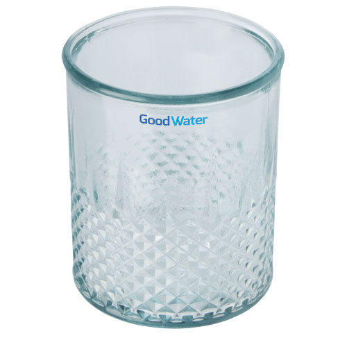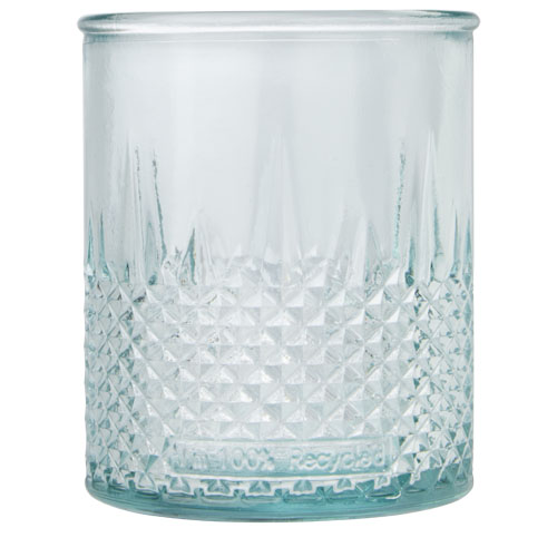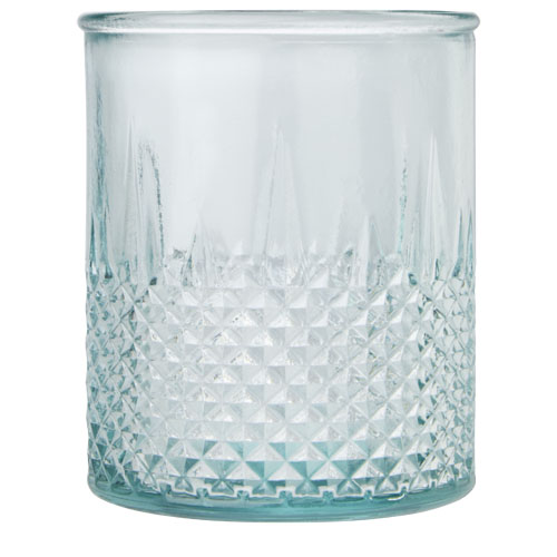 Theelichthouder van gerecycled glas met diamanteffect. Gemaakt van 1 glazen fles. Gerecycled glas wordt geproduceerd met minder energie, grondstoffen en toevoegingen, dan wat nodig is voor het maken van traditioneel glas. Theelichtje niet inbegrepen.