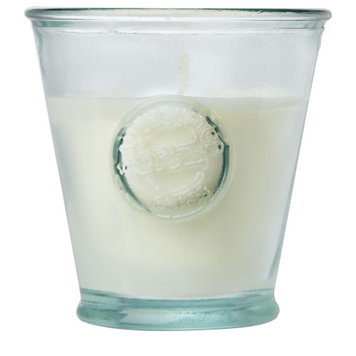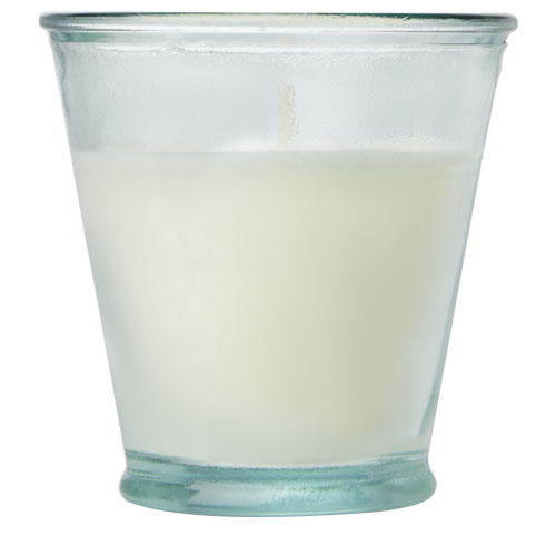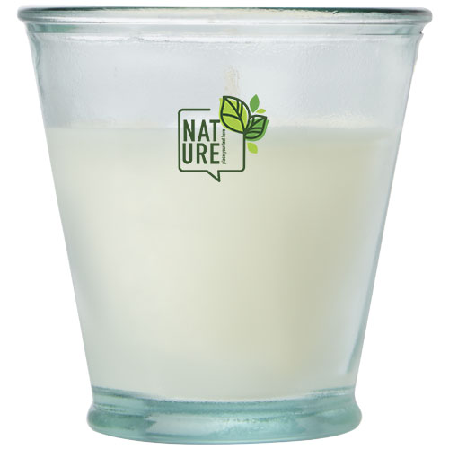 Natuurlijke, geurloze kaars gemaakt van sojabonen, een duurzame en hernieuwbare bron. De kandelaar is gemaakt van 100% gerecycled glas, afkomstig van 1 glazen fles. Gerecycled glas wordt geproduceerd met minder energie, grondstoffen en toevoegingen, dan wat nodig is voor het maken van traditioneel glas.