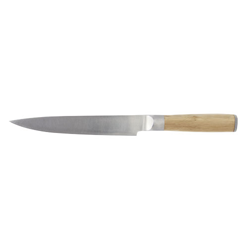 Vleesmes en vork met bamboe handvatten. Maat mes: 33,2 cm x 3,1 cm. Maat vork: 29,2 cm x 2,5 cm. De bamboe is afkomstig en geproduceerd volgens duurzame normen.