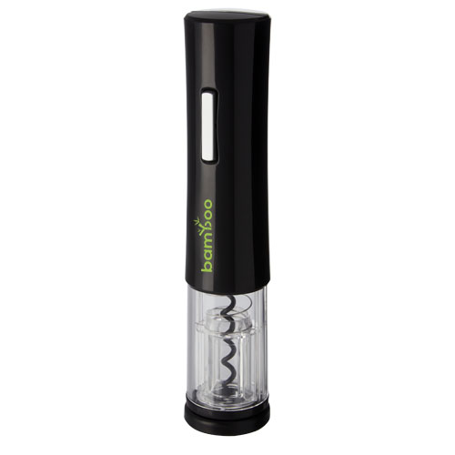 Elektrische wijnopener met foliesnijder. Hij werkt op 4 AA-batterijen (niet inbegrepen).