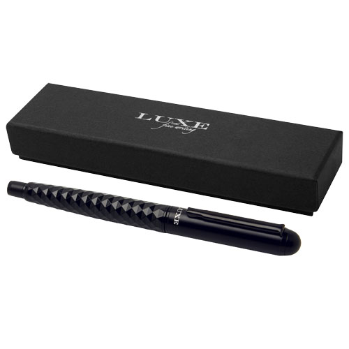 Een slanke look en stevigheid komen samen in deze exclusief ontworpen rollerbalpen. De houder is uitgerust met een tastbare grip. Inclusief een zwarte inktvulling en is verpakt in een 'LUXE' geschenkverpakking. Kan worden gecombineerd als cadeauset met de stylus of click action balpen.