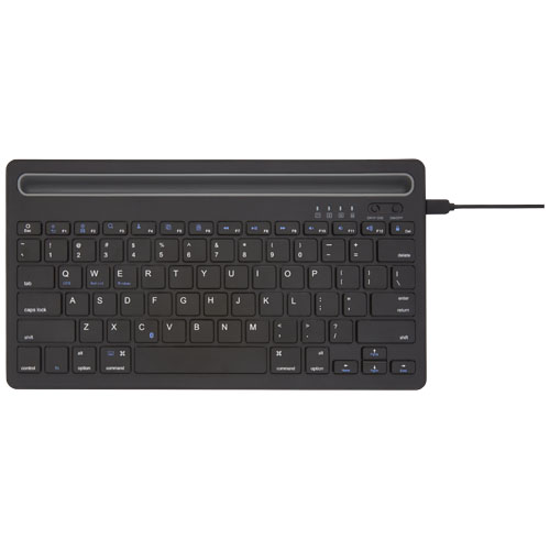Compact QWERTY-toetsenbord met 78 toetsen. Bluetooth® 3.0 met ondersteuning voor twee kanalen, zodat het verbinding kan maken met twee apparaten tegelijk. Geïntegreerde dockingstandaard voor een telefoon en tablet. Het toetsenbord is compatibel met pc/laptop, tablets, mobiele telefoons, smart-tv's en andere apparaten met Bluetooth®-functie. De werkafstand is maximaal 10 meter. De ingebouwde oplaadbare batterij van 150 mAh biedt minimaal 40 uur gebruik of tot 6 maanden stand-by. Het opladen duurt ongeveer 3 uur. Geleverd in een premium doos van kraftpapier met een kleurrijke sticker.