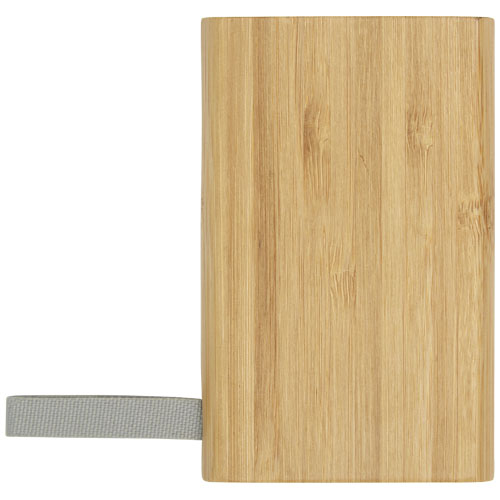 Bamboe powerbank die 5000 mAh back-upstroom biedt voor mobiele telefoons of andere digitale apparaten. Met ledlampjes en een webbing gemaakt van RPET-materiaal. Micro USB-oplaadkabel inbegrepen. Verpakt in een geschenkverpakking en geleverd met een gebruiksaanwijzing (beide gemaakt van duurzaam materiaal). Aangezien bamboe een natuurlijk product is, kan ieder item enigszins variëren in kleur en grootte, dat het uiteindelijke resultaat van de decoratie kan beïnvloeden.