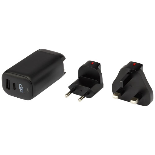 De ADAPT PD-reislader van gerecycled plastic is een compacte en milieuvriendelijke oplaadoplossing die is ontworpen om je onderweg in stijl van stroom te voorzien. Met zijn behuizing van gerecycled plastic en koperen en vernikkelde componenten biedt deze lader zowel bestendigheid als duurzaamheid. De oplader wordt geleverd met US, EU en UK plusg, zodat je hem gemakkelijk in verschillende regio's kunt gebruiken. De ingebouwde transformator zorgt voor een naadloze stroomconversie voor internationale verplaatsingen (AC 100-240 V 50/60 Hz). Deze reislader wordt geleverd met 2 poorten (Type-C en USB A) die veelzijdige en supersnelle oplaadopties bieden, en de PPS-functie (Programmable Power Supply) maakt adaptief opladen mogelijk. Geleverd in een premium doos van kraftpapier met een kleurrijke sticker.
