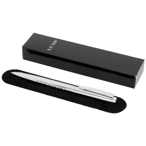 Balpen met exclusief design met glanzende chroomaccenten. Incl. premium zwarte inkt navulling en verpakt in een ''LUXE'' geschenkverpakking (15 x 3,5 x 2 cm).