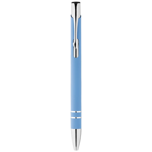 Rubber gecoate balpen met klikmechanisme. Zwartschrijvend.