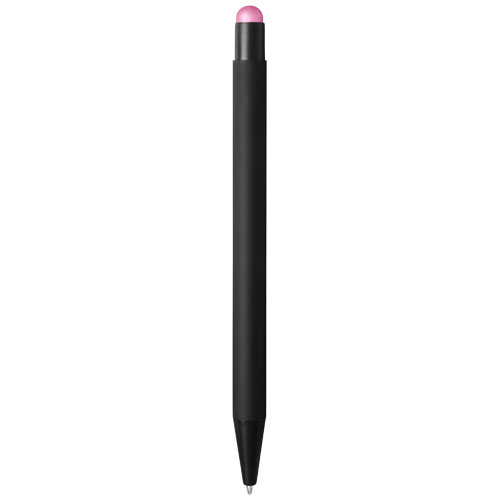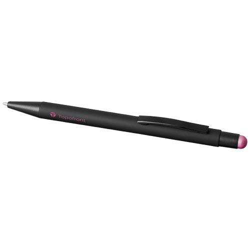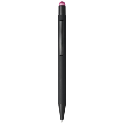 Rubber gecoate stylus balpen met klikmechanisme. De kleur van de styluspunt komt overeen met de lasergegraveerde onderlaag van de pen. De pen heeft een metalen clip, rubberen stylus en is gemaakt van aluminium. Schrijflengte: 450 m.