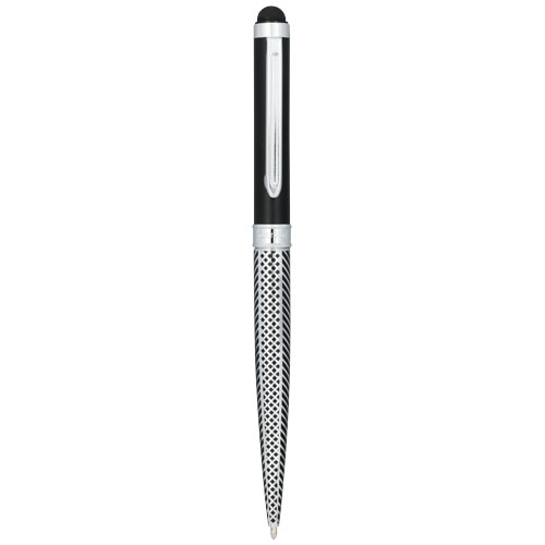Stylus balpen met exclusief design en stijlvol patroon onderaan de huls. Incl. zwarte inkt navulling en verpakt in een '' LUXE'' geschenkverpakking (16,5 x 4,5 x 2,8 cm).