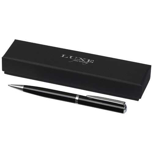 Gelakte balpen met exclusief ontwerp en zilverkleurige details. Incl. zwarte navulling van premium kwaliteit en verpakt in een luxe geschenkverpakking (16 x 4,5 x 2,8 cm).