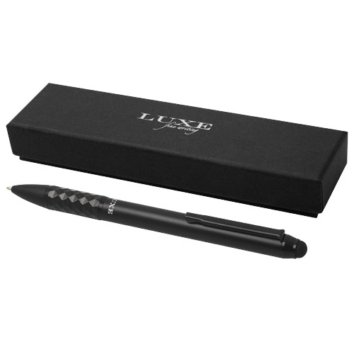 Een slanke look en stevigheid komen samen in deze exclusief ontworpen balpen met stylus. De houder is uitgerust met een tastbare grip. Inclusief een zwarte inktvulling en is verpakt in een 'LUXE' geschenkverpakking. Kan worden gecombineerd als cadeauset met de vulpen of rollerbalpen.