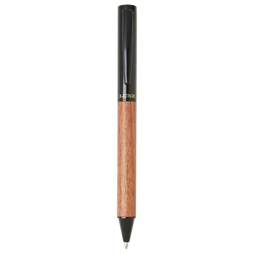 Balpen met draaimechanisme en exclusief design met houten onderstuk. Inclusief een zwartschrijvende vulling en verpakt in een LUXE geschenkverpakking.
