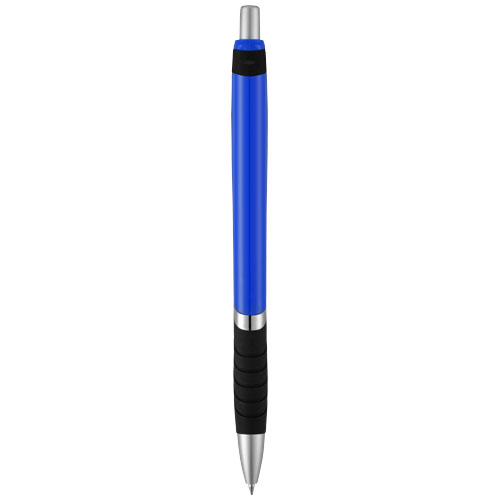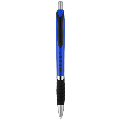 Balpen met klikmechanisme en rubberen greep. Zwartschrijvend.